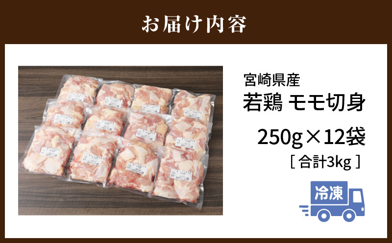 チョイスPayポイントと交換できる品 鶏肉 肉 若鶏 もも肉 宮崎県産 国産 国産鶏 九州 宮崎 切身 小袋 ぷりぷり 宮崎県産 若鶏モモ切身 IQF冷凍 250g×12袋 計3kg_M203-002_03