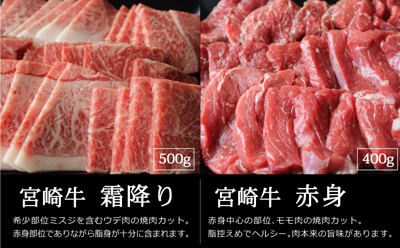 宮崎牛食べ比べ 霜降り 赤身焼肉セット 900g 最高級 黒毛和牛 ジューシー ヘルシー 赤身 モモ 冷凍 お肉 国産牛 食品 畜産物 牛肉 焼き肉 焼肉用 宮崎市 宮崎県