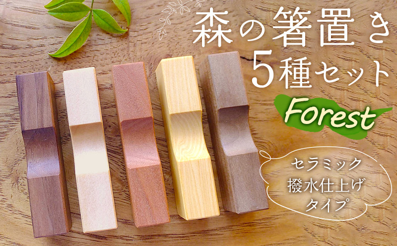森の 箸置き 5種セット『Forest』 ブラックウォルナット イチョウ カツラ カヤ ホオノキ 雑貨 日用品 セラミック 撥水 耐久性 手触り クルミオイル 谷山木材 人気シリーズ