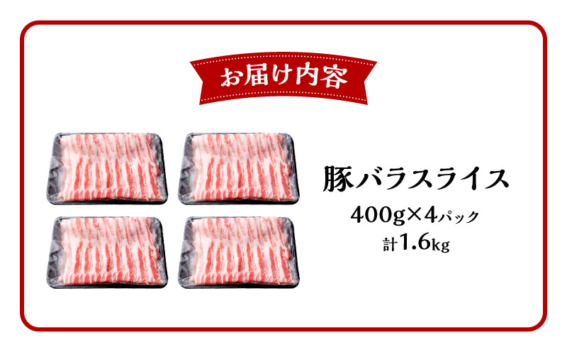 | 容量 | 豚バラスライス:400g×4パック 計1.6kg (原産地:宮崎県) |