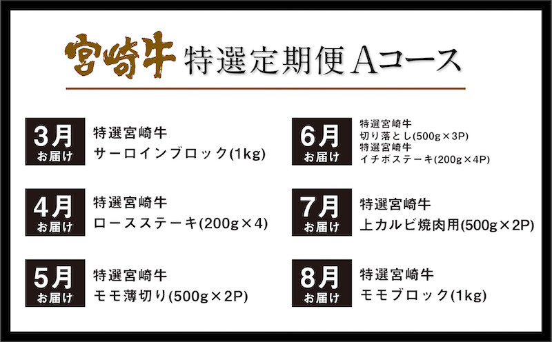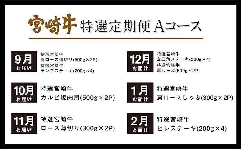 \一度のお申し込みで高級ブランド「宮崎牛」が6ヶ月間届くスペシャルな定期便/
