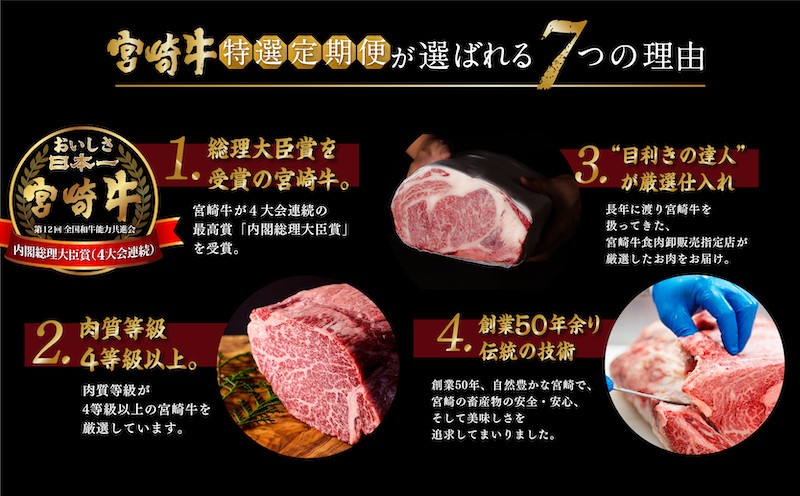 4大会連続、「内閣総理大臣賞」を受賞している宮崎牛を毎月お届け!