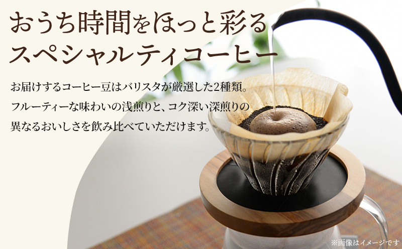 その時期におすすめのコーヒーをバリスタがセレクト。浅煎りでフルーティな味わいと、深煎りでコクのある味わいの2種類が入ります。その日の気分でお好みのものを楽しんでください。
