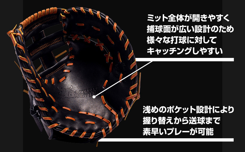 チョイスPayポイントと交換できる品 軽量 型くずれしにくく しなやかに粘る が特徴の宮崎県産牛革使用の硬式用のミット 宮崎県産牛革使用 WAGYU JB 硬式用 ミット 一塁手用 JB-003E(ブラック/右投げ用)_M147-055