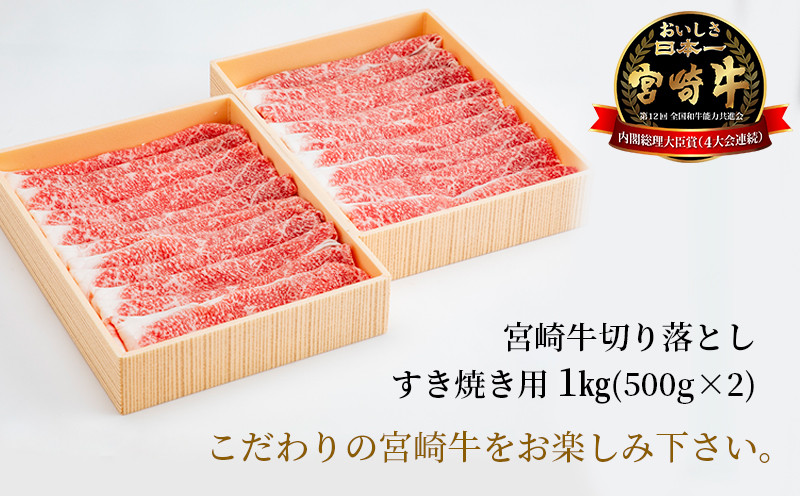 チョイスPayポイントと交換できる品 牛肉の『旨み』がつまった「宮崎牛」。やわらかな食感と上品な脂を堪能いただけます。 宮崎牛切り落としすき焼き用1kg(500g×2)_M155-008_03-F