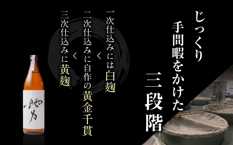 拘りの三段仕込み製法・・・ 一次で白麹、二次で自作の黄金千貫、三次で黄麹を使い手間を惜しまない製法。