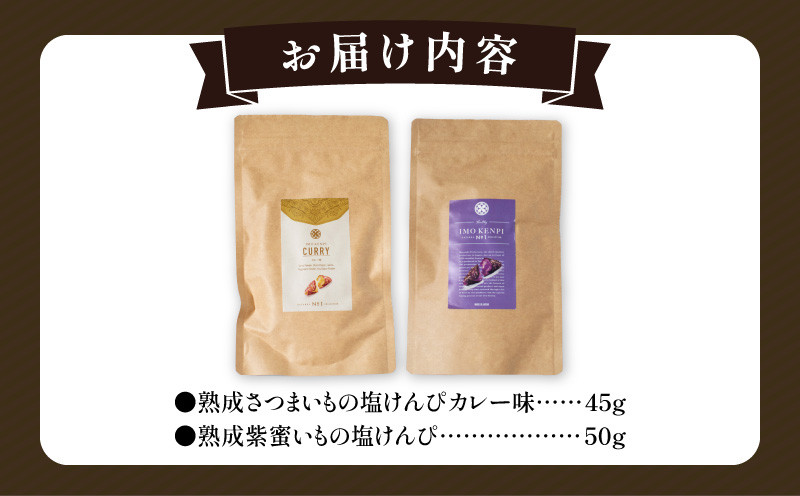 | 容量 | ●熟成さつまいもの塩けんぴ カレー味45g ●熟成紫蜜いもの塩けんぴ 50g |