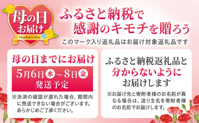 2026年4月14日より、発送期日を【ご入金確認後、2週間以内に発送予定】から【母の日までにお届け】へ変更しています。