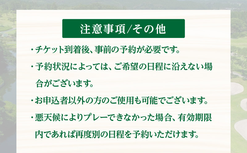 ・悪天候によりプレーできなかった場合、有効期限内であれば再度別の日程を予約いただけます。