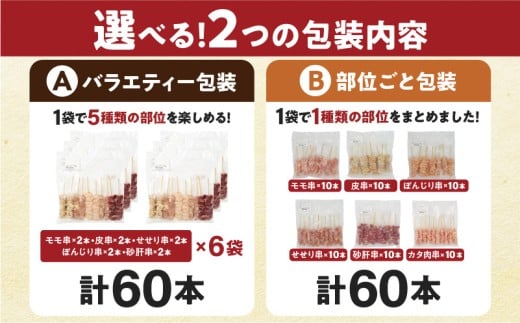 【選べる発送期日】若鶏の焼き鳥3種(60本)盛り合わせ_M146-013-…
