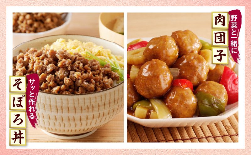 ハンバーグ、ミートソース、そぼろ、肉団子、餃子、カレーの具材など、いろいろな料理に活躍!
