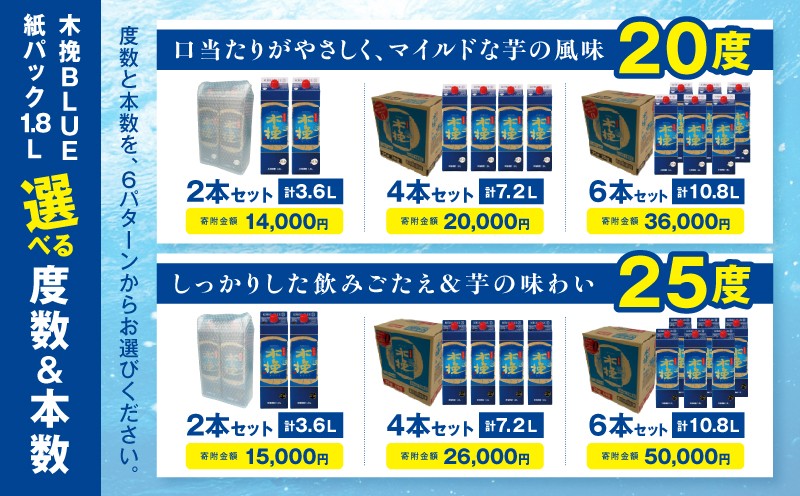 チョイスPayポイントと交換できる品 すっきりキレのある甘み、爽やかな口当たりが特徴の本格芋焼酎 【選べる度数・本数】【超最速便】木挽BLUE 紙パック 1.8L 人気 おすすめ 20度 25度 雲海酒造 紙パック セット お酒 酒 焼酎 本格焼酎 本格芋焼酎 アルコール 芋焼酎 お湯割り 水割り ロック ストレート 贈答 贈り物 ギフト プレゼント 手土産 お歳暮 お中元 名物 木挽ブルー 紙パック焼酎 宮崎県産 特産品 さつまいも ソーダ割り アウトドア BBQ_M375-001-SKU