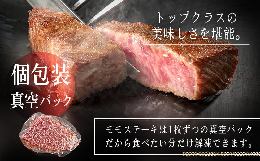 A5等級の宮崎牛モモ肉をステーキカットでお届け!単身世帯の方にもオススメ!