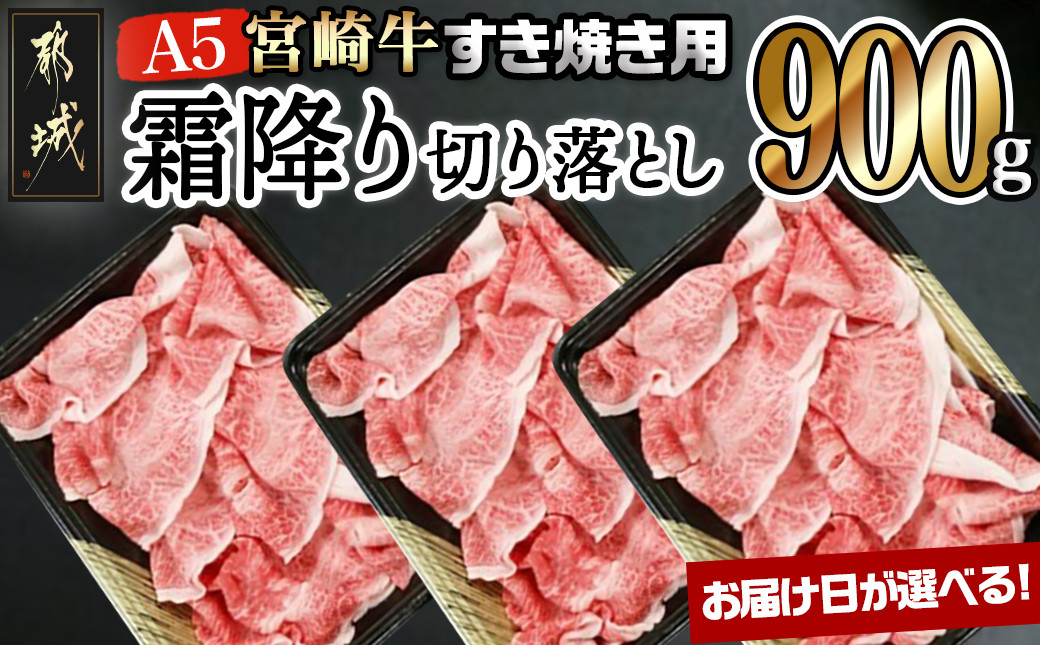 チョイスPayポイントと交換できる品 都城産和牛A5ランクの霜降り部位♪300gの少量パックセットでご用意しました! 【お届け日を選べる♪】宮崎牛(A5)霜降り切り落とし すき焼き用900g_AD-0117-D_(都城市) A5等級 国産黒毛和牛 すきやき用 牛肩 牛バラ霜降り切り落とし 300g×3 牛バラ肉 牛ばら 自慢の逸品