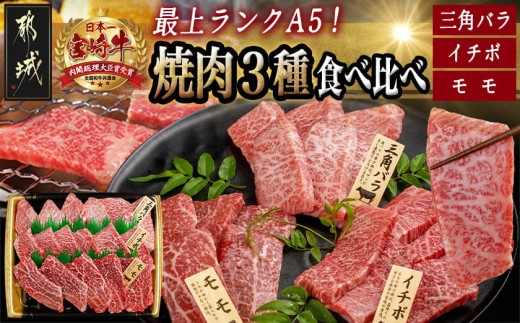 【A5】宮崎牛焼肉3種食べ比べセット【三角バラ・イチボ・モモ】…