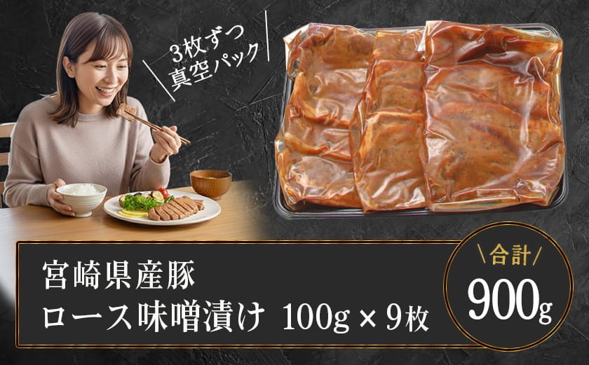 チョイスPayポイントと交換できる品 肉のながやまオリジナルの手作り味噌で漬け込んだ豚ロース味噌漬けです♪ 宮崎県産豚ロース手作り味噌漬け9枚_AA-2504_(都城市) 豚肉 みそ漬け 豚ロース味噌漬け 100g×9枚 オリジナル手作り味噌漬け 豚 真空パック 冷凍保存可 おかず お手軽調理