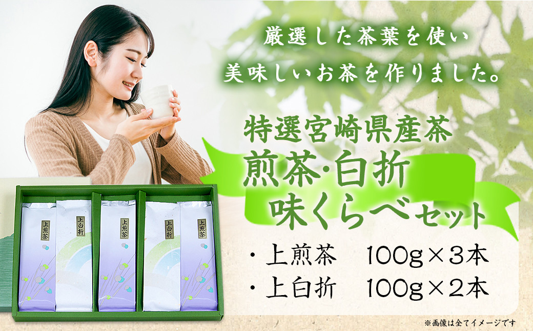 チョイスPayポイントと交換できる品 それぞれの茶葉の違いを比べながらお召し上がりください♪ ≪特選茶≫煎茶・白折味くらべセット_MJ-4804_(都城市) 茶葉 上煎茶 100g×3本 上白折 100g×2本 お茶の産地 最高級品 ホット 冷茶 日本茶 せんちゃ しらおれ