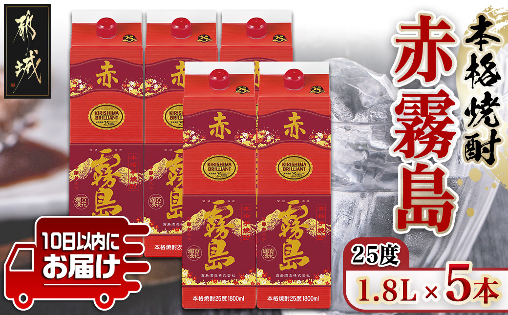 チョイスPayポイントと交換できる品 【10日以内にお届け!】都城市自慢の焼酎特急便♪ 【霧島酒造】赤霧島パック(25度)1.8L×5本 ≪みやこんじょ特急便≫_34-0724_(都城市) フルーティー 本格芋焼酎 1.8L 5本 お湯割り 水割り ストレート オン・ザ・ロック ポリフェノール 定番焼酎