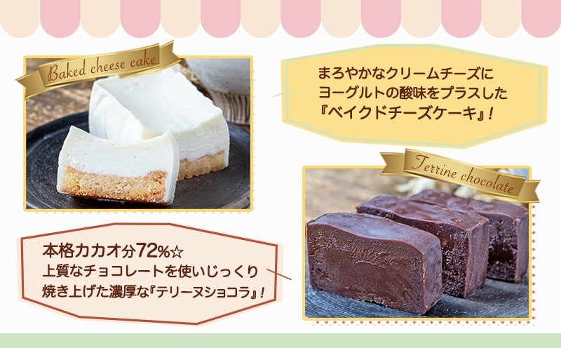 チョイスPayポイントと交換できる品 あま~い幸せがぎゅっと詰まったスイーツをご堪能ください♪ ベイクドチーズケーキ&濃厚テリーヌショコラセット_AA-C219_(都城市) カカオ分72% チョコレート ヨーグルトの酸味 クリームチーズ 洋菓子 お菓子 スイーツ 四角いケーキ 冷凍 おやつ ショコラケーキ