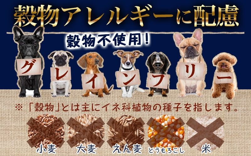 穀物アレルギーに配慮して、小麦・とうもろこし・米等の穀物不使用のグレインフリー。