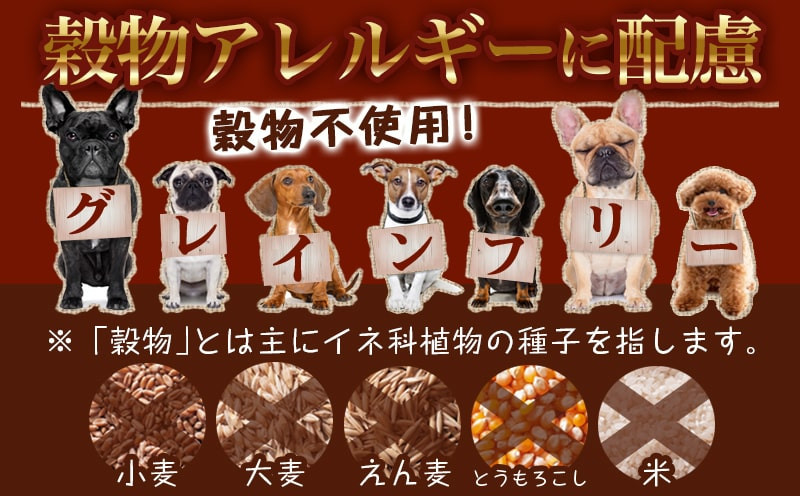 穀物アレルギーに配慮して、小麦・とうもろこし・米等の穀物不使用のグレインフリー。