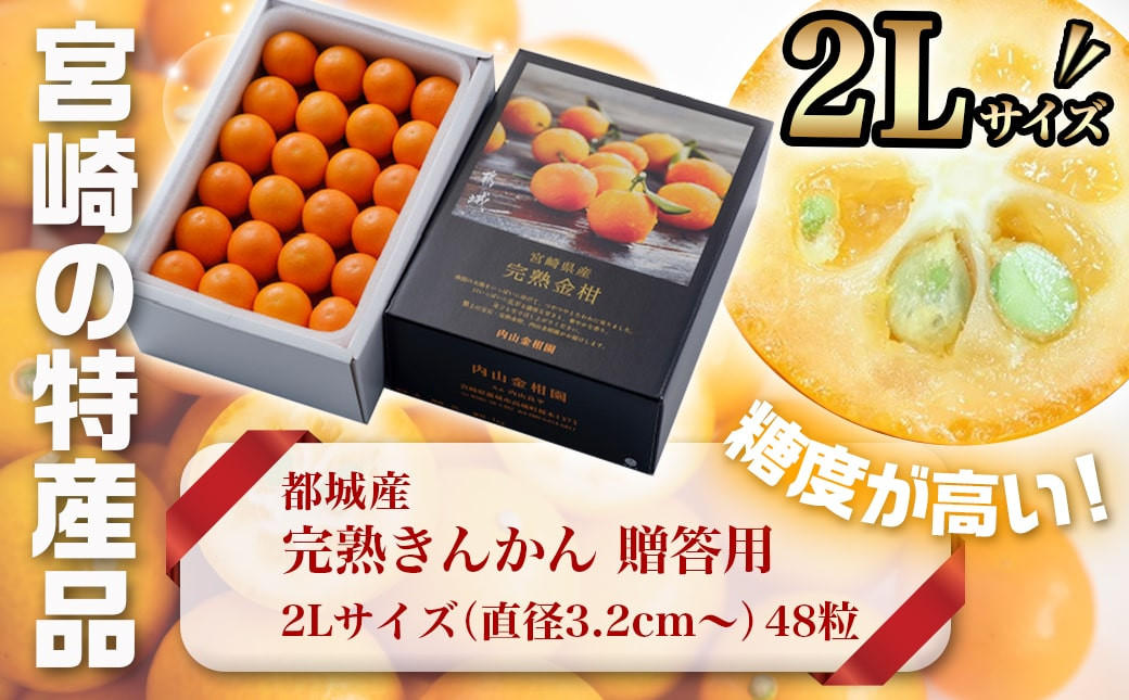 チョイスPayポイントと交換できる品 宮崎の特産品として有名な完熟きんかん♪ぜひ皮のまま、丸ごとお召し上がりください! 【先行受付!】【2月~3月お届け】都城産完熟きんかん 贈答用(2Lサイズ)_12-B502_(都城市) 都城産 完熟きんかん きんかん 2Lサイズ 48粒 糖度16度以上 柑橘類 ギフト 贈答用