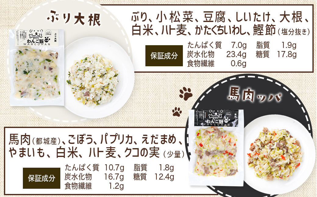 チョイスPayポイントと交換できる品 都城市のドッグカフェよりわんちゃんに美味しい食材をお届け♪ 手づくり☆わんご飯『うまうまセット』_12-J501_(都城市) 犬用 手づくりご飯 ぶり大根 馬肉ッパ 牛しぐれ 豚肉ポトフ ドッグフード ペットフード