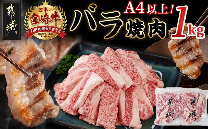 チョイスPayポイントと交換できる品 宮崎牛のバラ焼肉を是非お召上がりください! 宮崎牛バラ焼肉1kg(真空)_17-8903_ (都城市) 牛肉 牛バラ焼肉用カット肉(500グラム×2袋) 合計1キロ 肉質等級 4等級・5等級 バラ 宮崎牛 真空