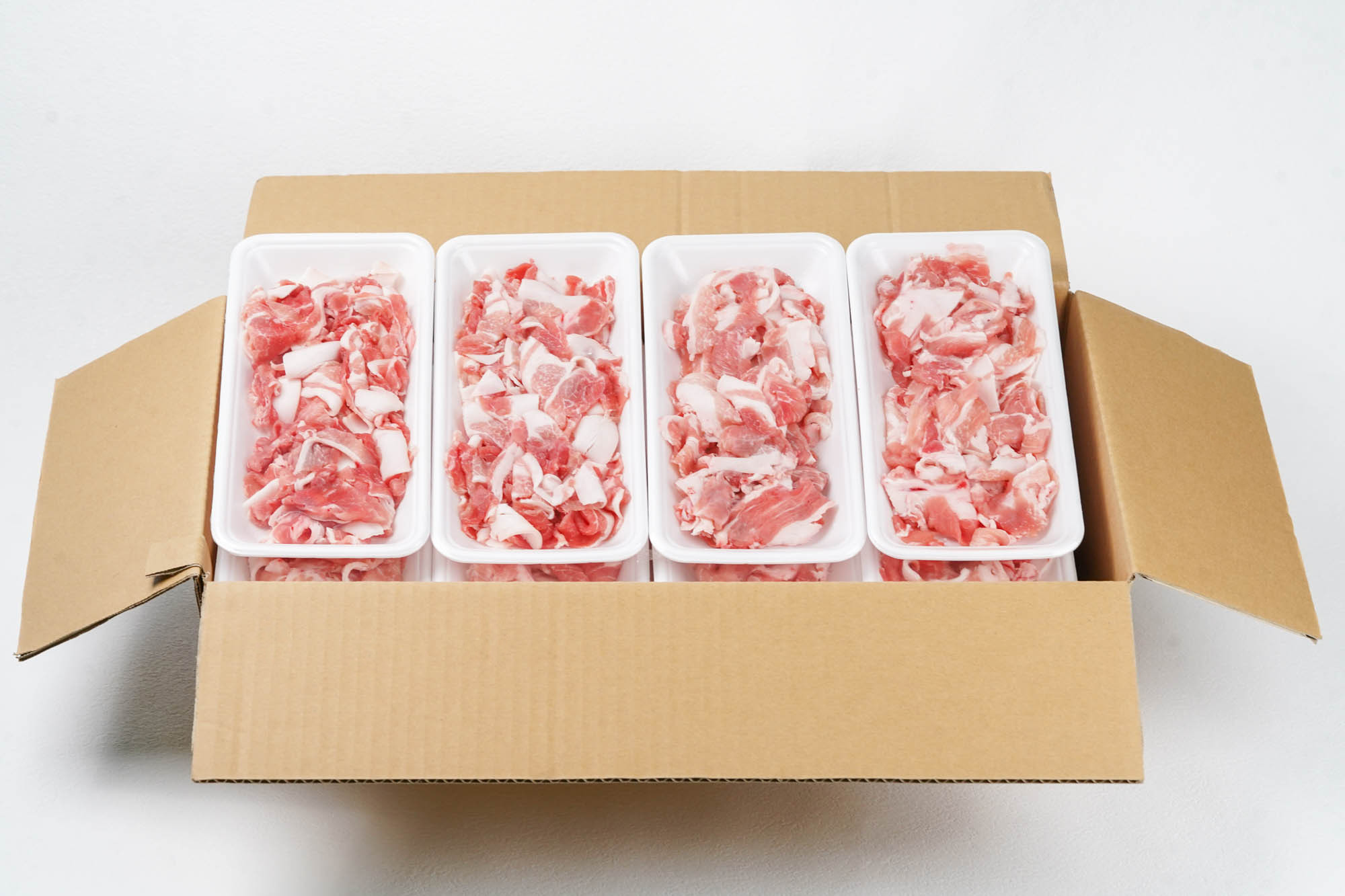 安心・安全な豚肉を食べやすい大きさに加工し、200g×20パックでお届けします。