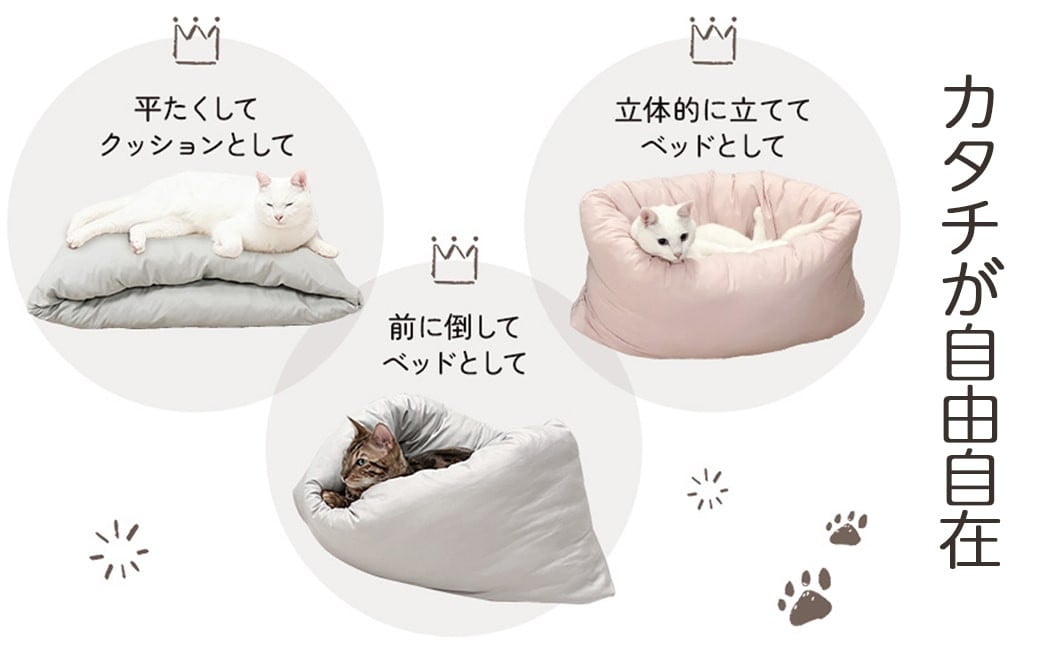 ふわふわのおふとんに包まれたペットと、ほっこり癒しの時間をお過ごしください。