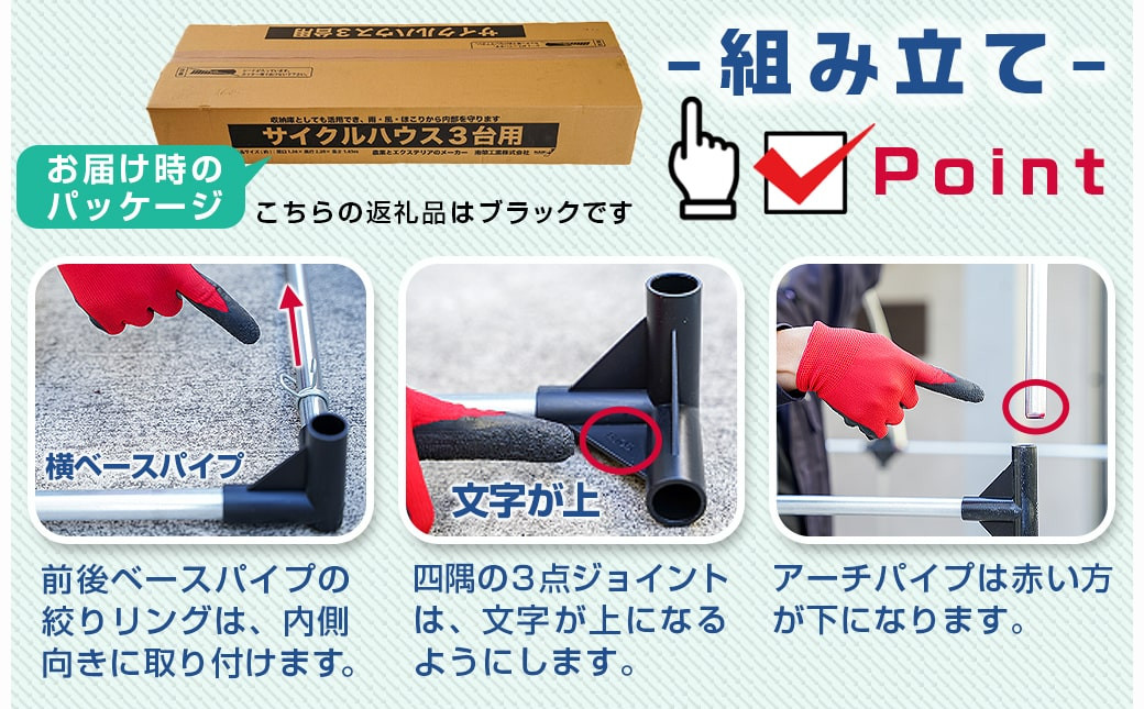 チョイスPayポイントと交換できる品 パイプ車庫の実績と性能をそのままサイクルハウスに応用。自転車3台収納可能です! サイクルハウス3台用 BK【巻上げ式】_DI-J402_(都城市) サイクルハウス 3台用 ブラック 巻上げ式 組立式 組立説明書付 収納 便利 耐久性