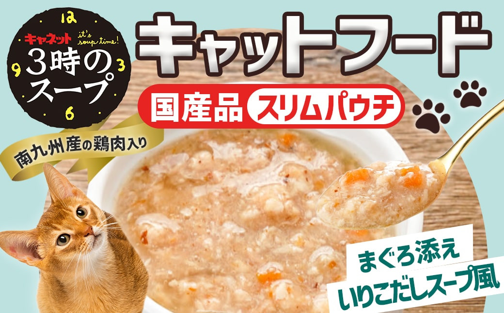 チョイスPayポイントと交換できる品 鶏肉に、まぐろを加えじっくり煮込み、いりこだしスープ風の猫ちゃん用水分補給♪ 《キャットフード》3時のスープ まぐろ添え いりこだしスープ風※ポスト投函_LE-3308_(都城市) キャットフード まぐろ添え いりこだし スープ風 南九州産鶏肉 スリムパウチ 水分補給 まぐろ 猫用