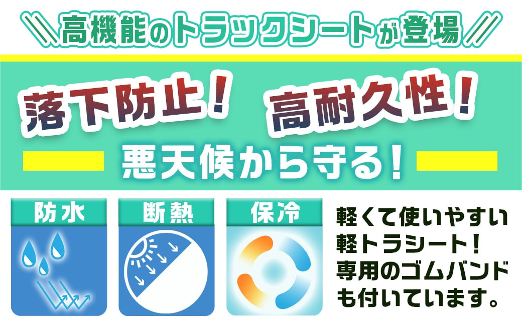 荷物落下を防いで紫外線や悪天候から守るトラックシートが登場!!