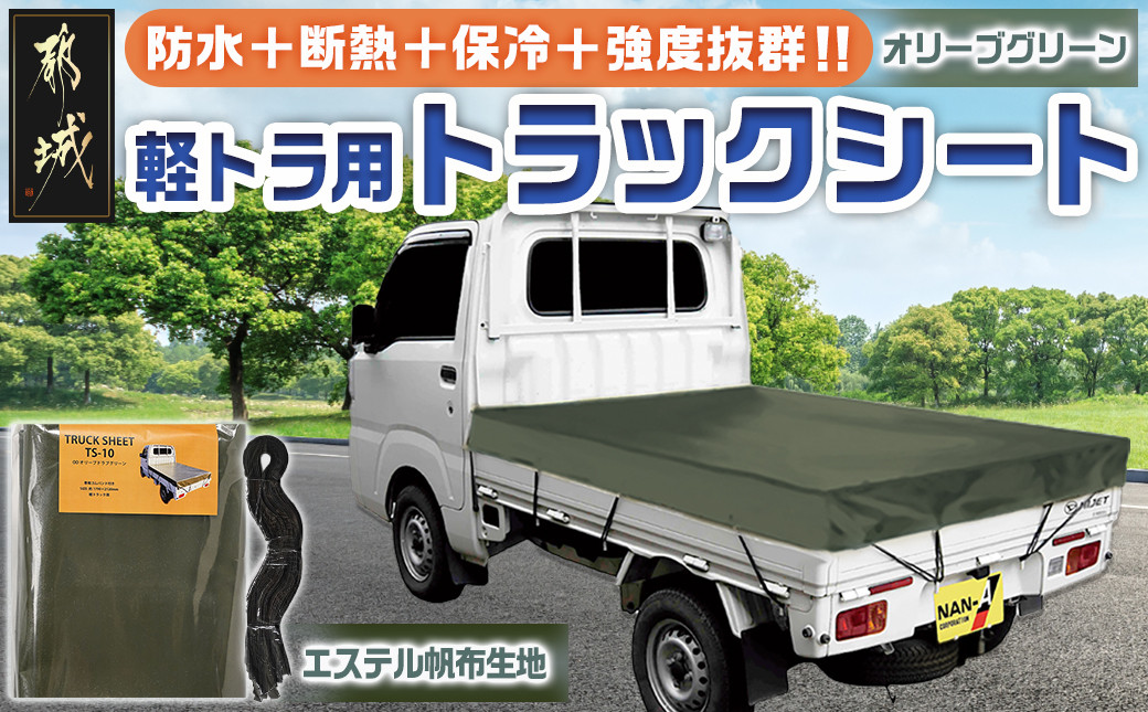 チョイスPayポイントと交換できる品 荷物落下を防いで紫外線や悪天候から守るトラックシートはオススメです! トラックシート TS-10 OD(オリーブグリーン)≪軽トラック用≫_16-J407_(都城市) 防水機能 強度抜群 軽トラック用 ゴムバンド付 断熱 保冷機能 耐久性 エステル帆布生地
