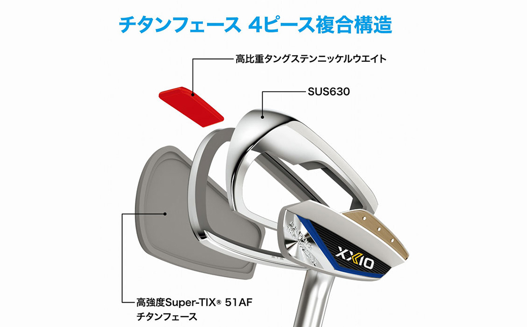 チタンフェースの4ピース複合構造による徹底した低重心設計と