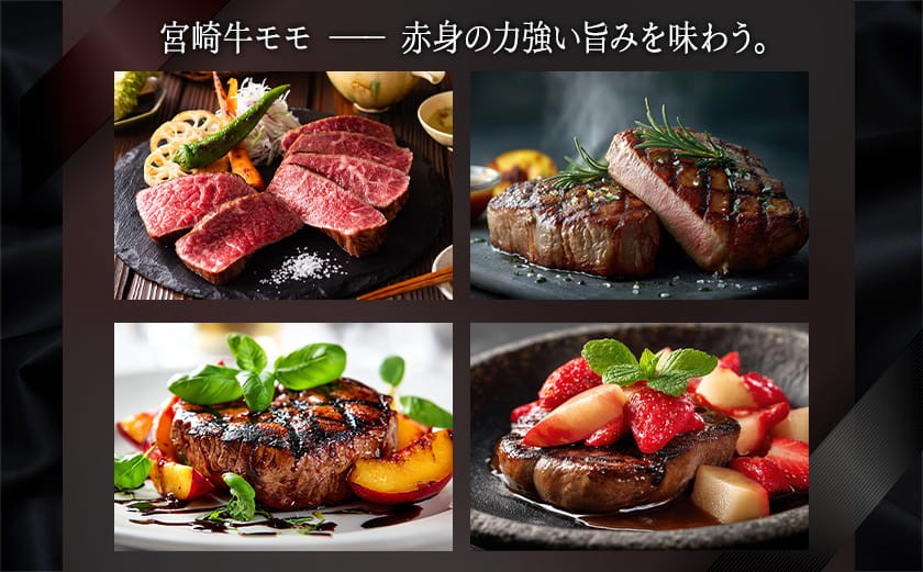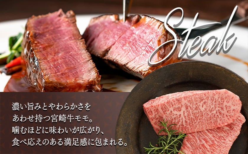 A5等級の宮崎牛の「モモ」の部位をステーキカットでお届けします。