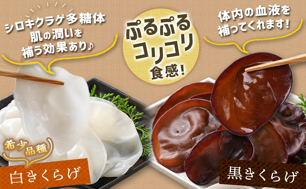 チョイスPayポイントと交換できる品 肉厚の生きくらげをご自宅で是非お楽しみください♪ ≪季節限定!≫ぷりぷり食感の生きくらげ(白&黒Mix)130g×6パック_11-C901_(都城市) 生きくらげ 黒きくらげ 白きくらげ ヘルシー 130g 6パック