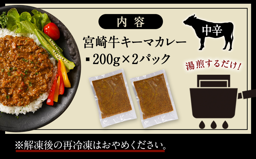 チョイスPayポイントと交換できる品 肉の旨味と数種類のスパイスをブレンドして素材の旨味を引き出した絶品キーマカレー♪ 絶品!焼き肉屋の宮崎牛キーマカレー(中辛)_AA-7707_(都城市) 宮崎牛 キーマカレー 中辛 200g×2パック スパイス 湯せん