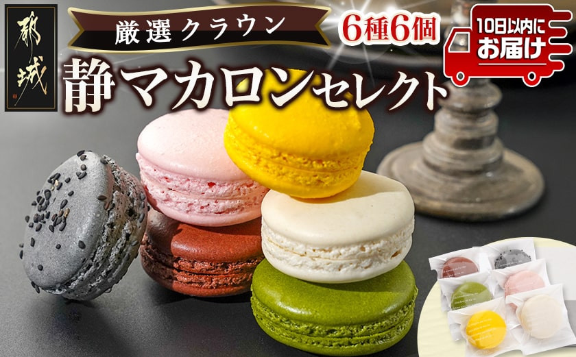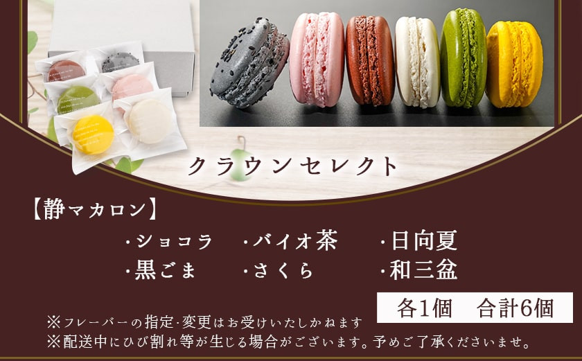 チョイスPayポイントと交換できる品 サクッとした食感『静マカロン』!おすすめの6種のフレーバーをチョイス! 静マカロン クラウンセレクト 6種6個入≪みやこんじょ特急便≫_LE-C210-Q_(都城市) スイーツ ショコラ バイオ茶 日向夏 黒ごま さくら 和三盆 マカロン