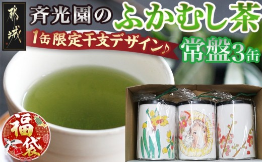 NEW 【福袋★2026】斉光園のふかむし茶缶ギフト☆季節の花柄&干支柄☆_…