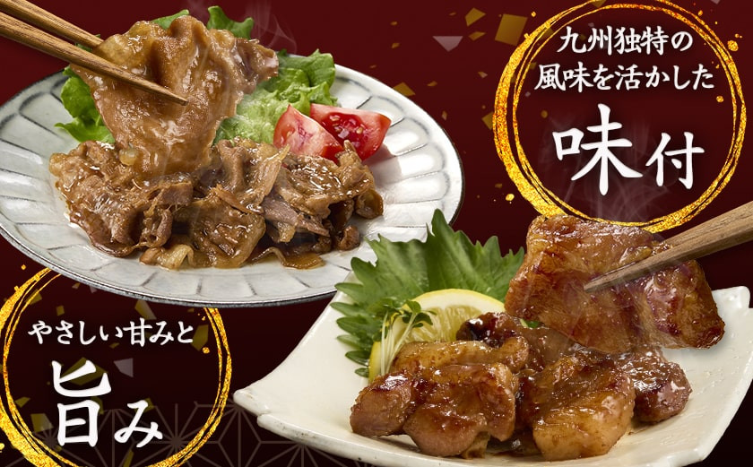 チョイスPayポイントと交換できる品 「焼酎たれ漬け」のさっぱりとした味わい。と「味噌漬け」の甘みのあるコク深い味わい 豚肉食べ比べ!九州甘口漬け込み(たれ・味噌)セット_AA-F208_(都城市)
