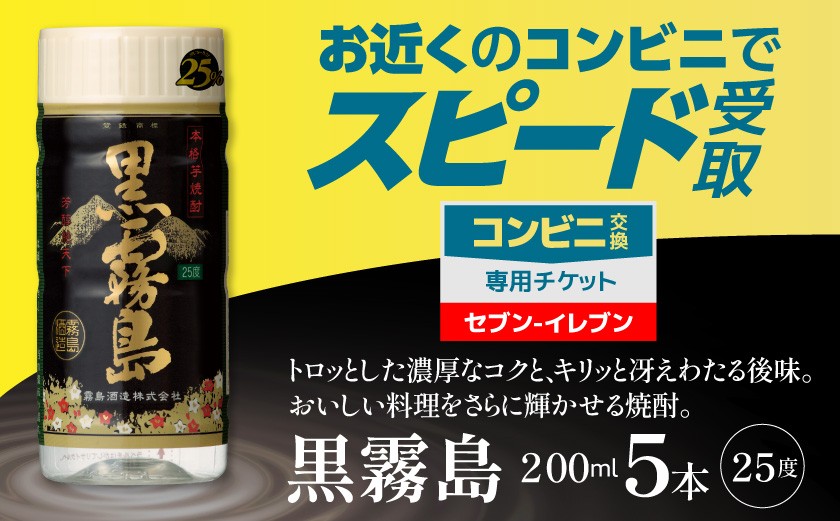 コンビニ交換専用チケット(セブン-イレブン)黒霧島25度200ml×5…