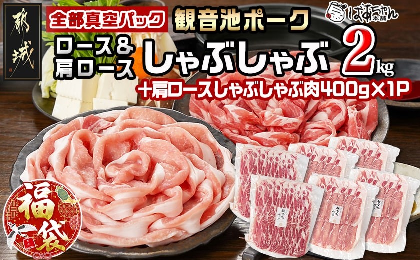 チョイスPayポイントと交換できる品 都城産のブランドポーク「観音池ポーク」!1番人気、2番人気の部位を揃えました♪ 【福袋★2026】観音池ポークロース&肩ロースしゃぶしゃぶ〈全部真空パック〉2kg+400g_14-1504-F2026_(都城市) 観音池ポーク 豚肉 ロース 肩ロース しゃぶしゃぶ肉