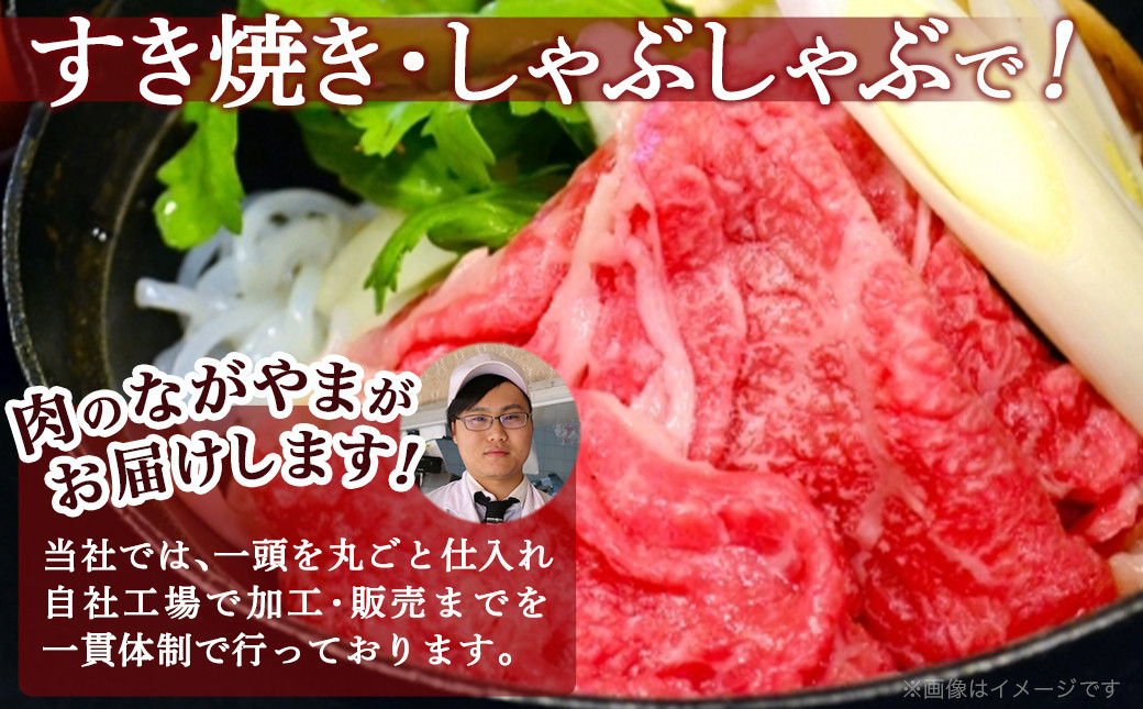 肩ロースとモモを大判のすき焼き用にスライスし、合計500gをお届けします!