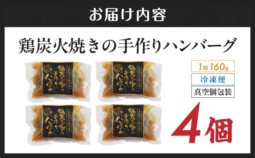 チョイスPayポイントと交換できる品 宮崎県の郷土料理、鶏の炭火焼がハンバーグに形を変えて登場!! 鶏炭火焼きの手作りハンバーグ4個_12-N6-001-4_(都城市) 国産鶏 炭火焼 宮崎県産鶏肉 お手軽 炭火焼ハンバーグ 真空 個包装調理済 時短 湯煎 手作り ギフト 贈答用にも