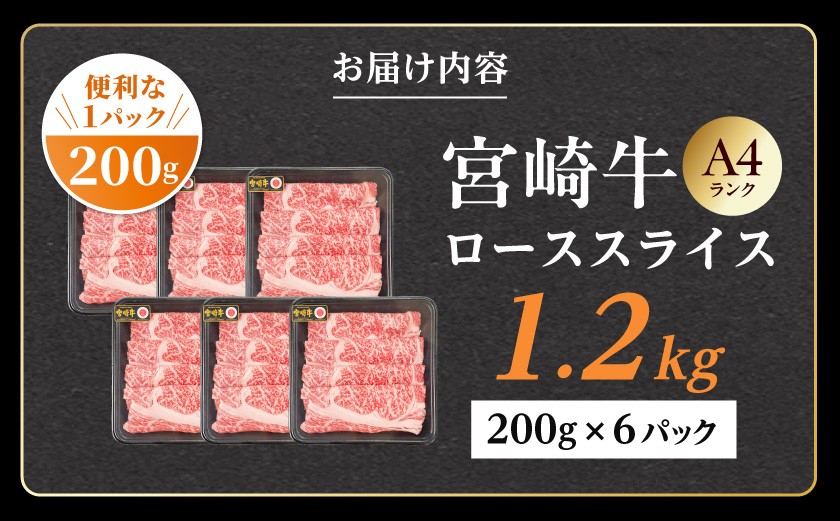 チョイスPayポイントと交換できる品 A4ランク宮崎牛!絶妙にとろける霜降りの旨味♪ 生産農家応援!宮崎牛ローススライス1.2kg_21-26-001-1200g_(都城市) A4 4等級 国産ブランド牛 宮崎牛 黒毛和牛 ロース スライス 小分け