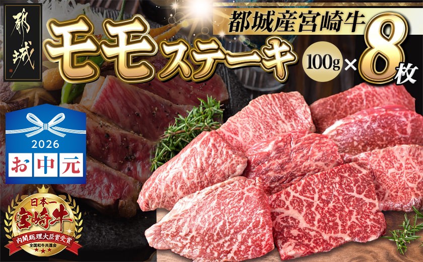 NEW 【お中元】宮崎牛モモステーキ100g×8枚_AC-2517-SG