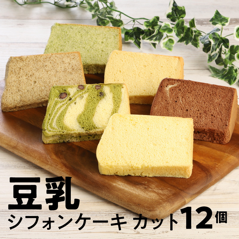 | 容量 | 豆乳シフォンケーキ カット 12個セット ・米粉豆乳シフォンケーキ×2 ・豆乳ベジシフォンケーキ ×2 (時期により、生姜味orほうれん草味をお届けします。) ・豆乳シフォンケーキ プレーン×2 ・豆乳シフォンケーキ ココア×2 ・豆乳シフォンケーキ 抹茶×2 ・豆乳シフォンケーキ 紅茶×2 |