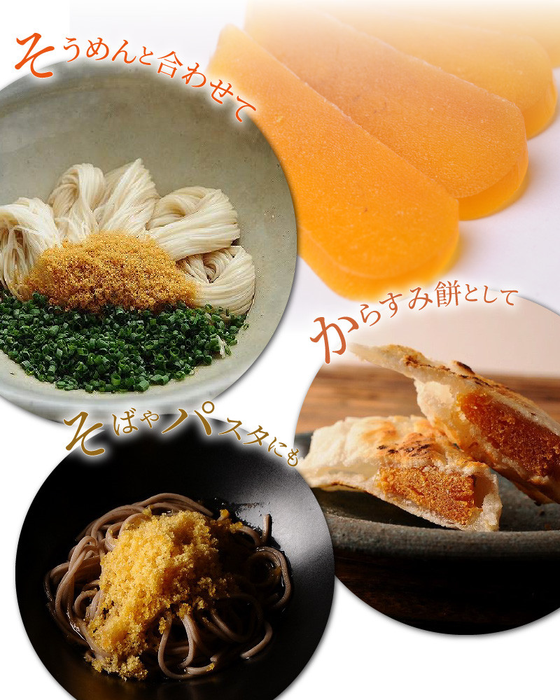 市内で獲れたボラの卵巣を原材料の主要な部分として加工製造した商品であり、重量・付加価値の7割以上を占める