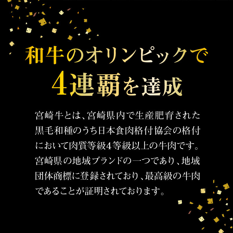 宮崎牛(みやざきうし、みやざきぎゅう)とは、宮崎県内で生産肥育された黒毛和種のうち日本食肉格付協会の格付において肉質等級4等級以上の牛肉です。